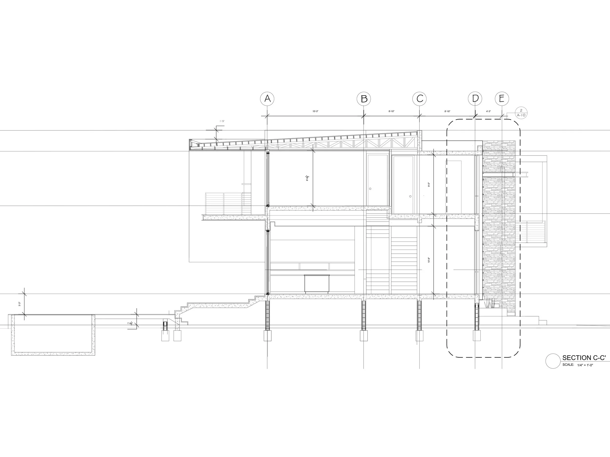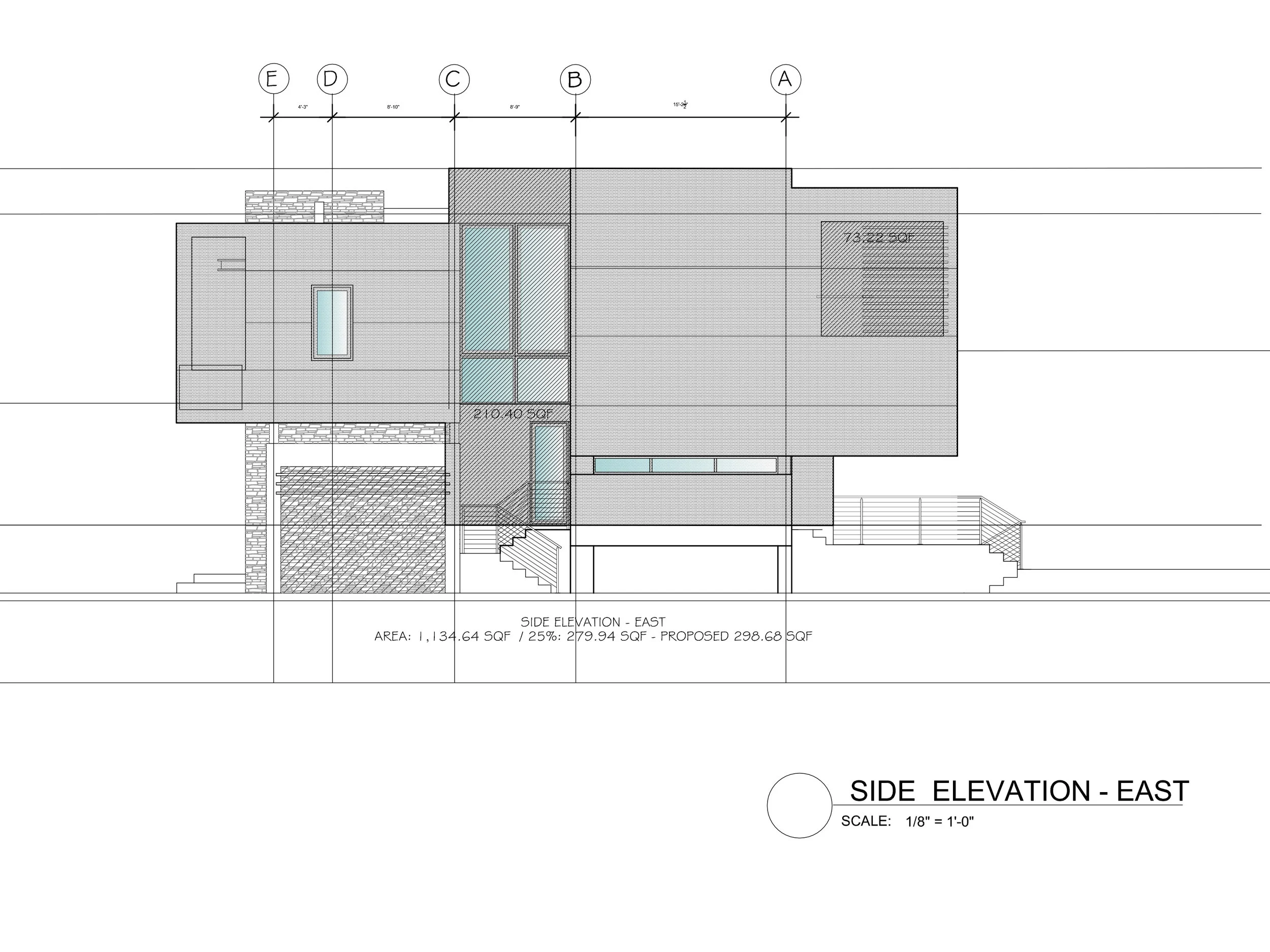 This exterior space was designed as a structure that had no columns, in order to not block the view to the outside. This was done by applying the material of stone to the exterior part and by doing a cantilever that would balance out the structure of the house. In the plans, the idea of spatial organization and simplicity is very prominent, because the exterior space is the one that brings light into the house, and all the spaces are organized so that they can feed off from this interaction of natural light. The access space into the house is a double height space that is also surrounded by high windows, for the entry of natural light into the project.